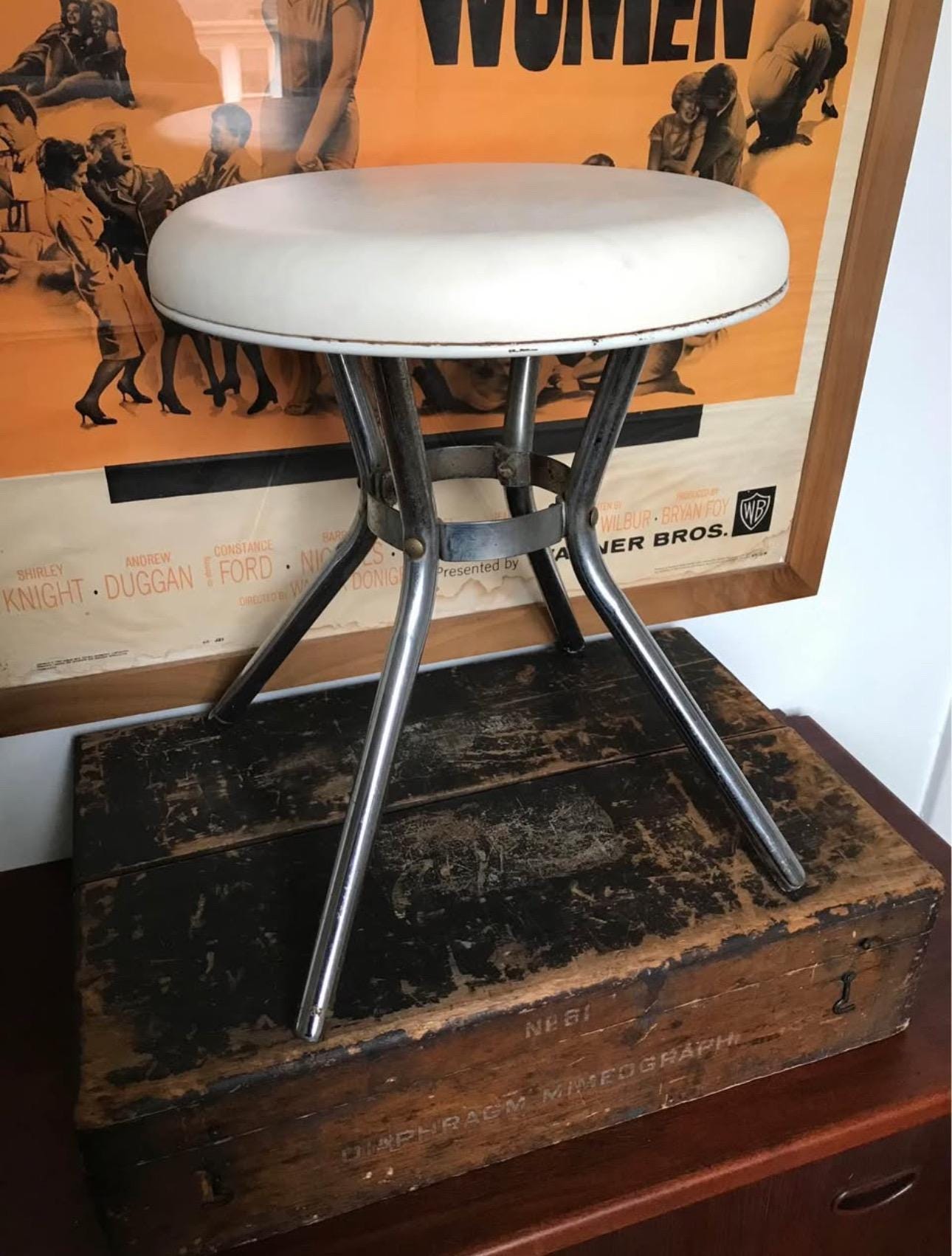 1960s Mid Century White Foot Stool