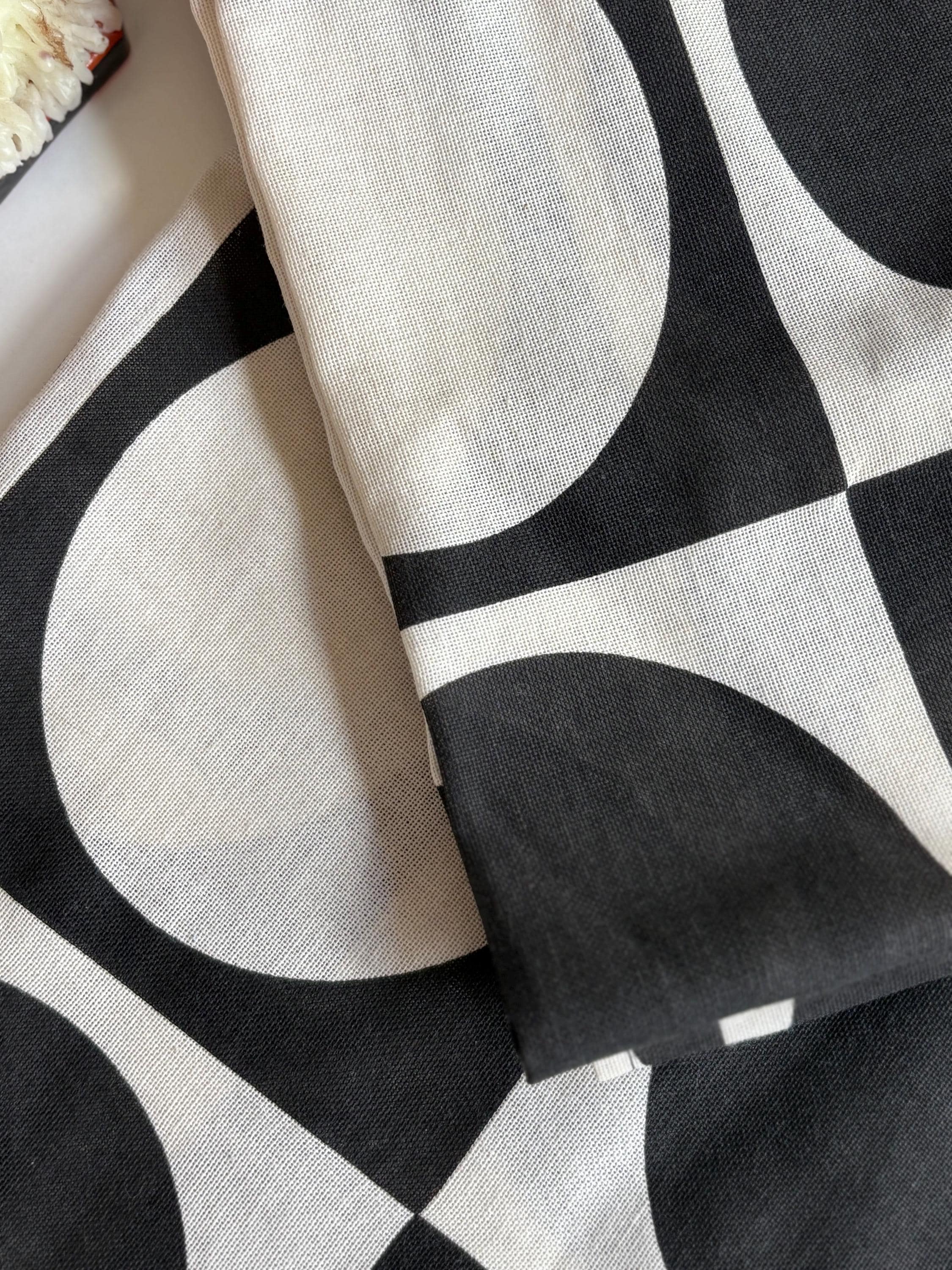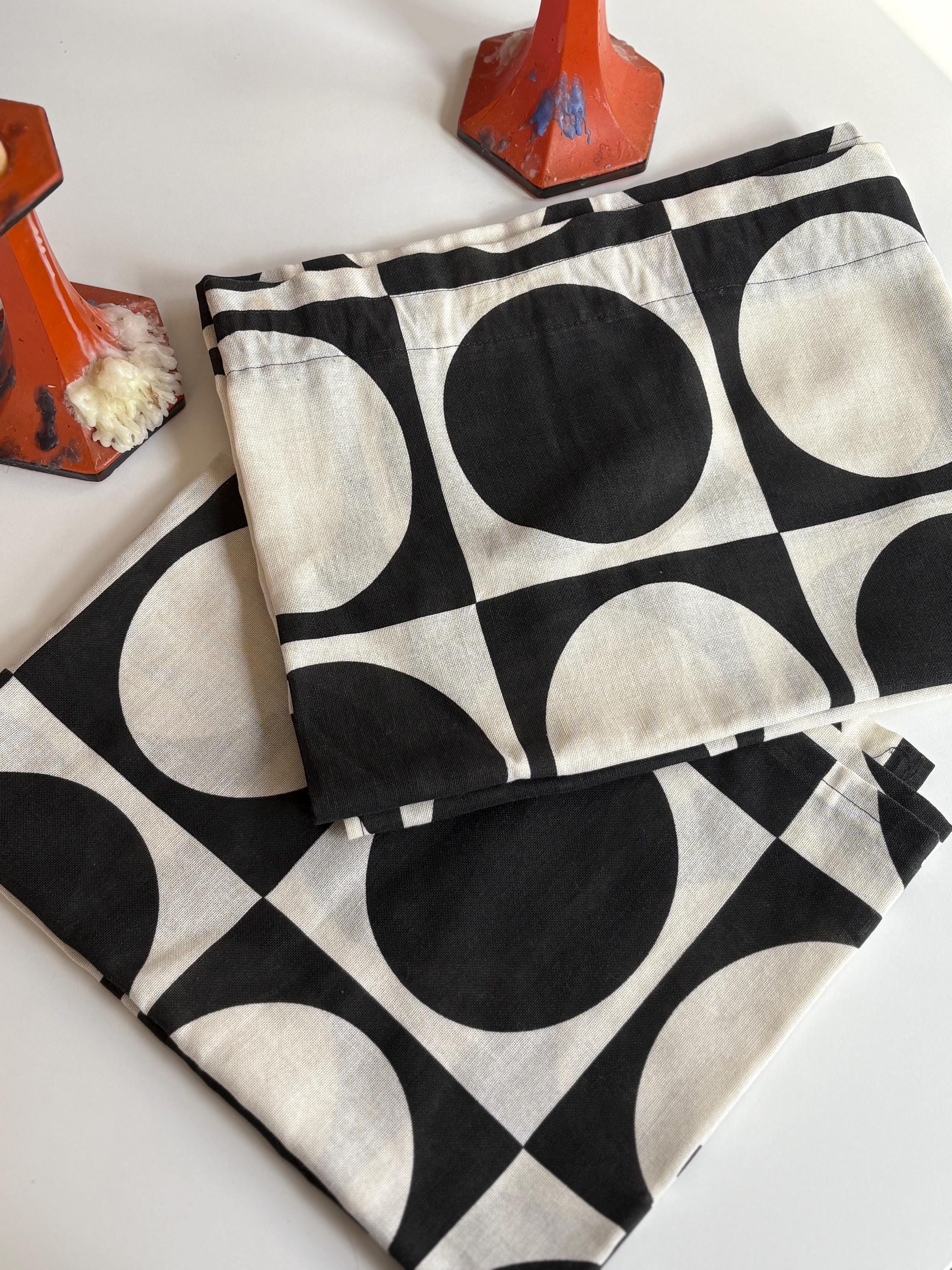 1960s Danish Space Age Linen Panel Curtains, Set of 2 Black & White