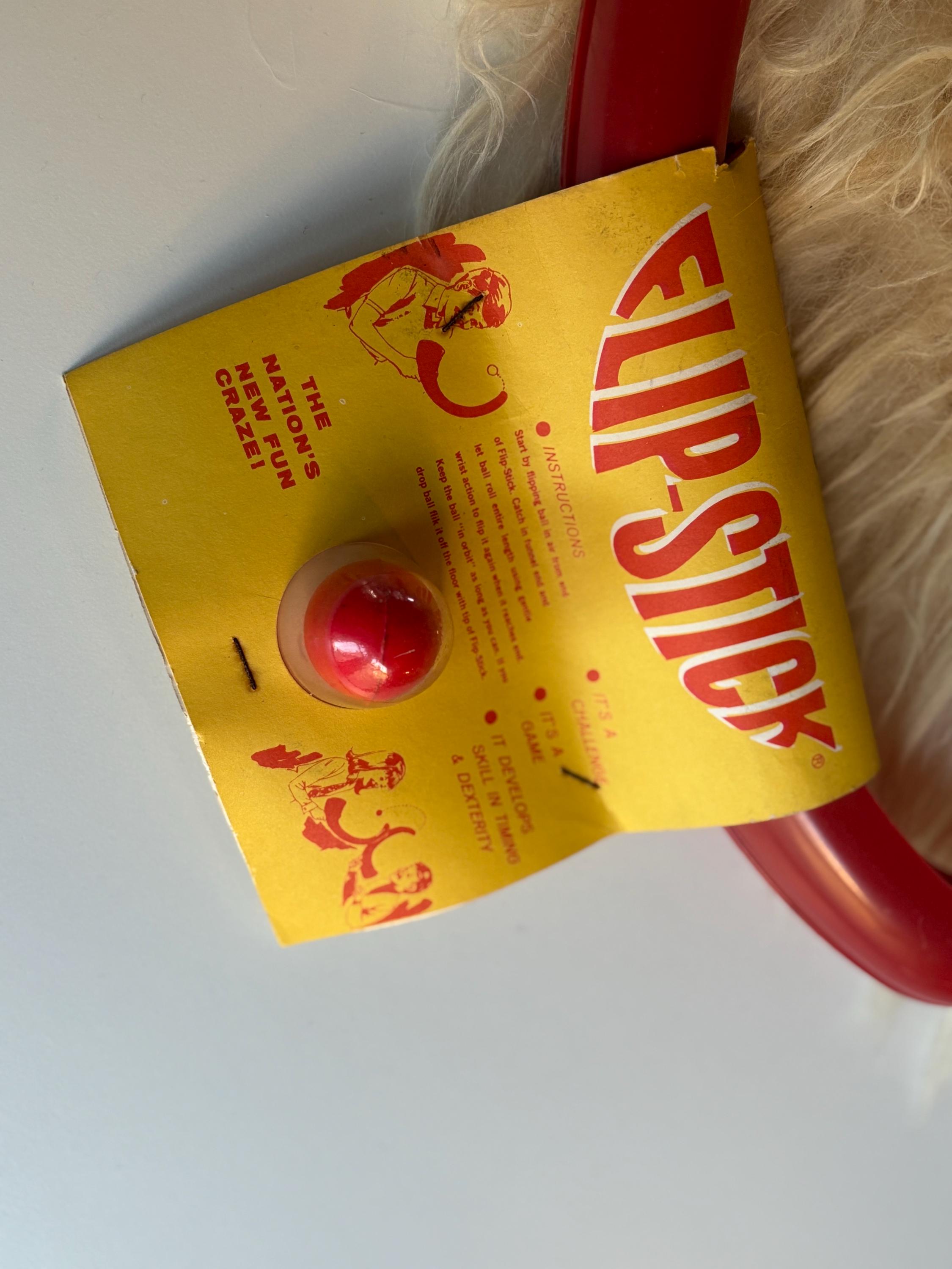 A hard to come by game still in its original packaging! This is a rare find and is in fantastic functional condition and fun for all! About 16” in length. Made of red plastic. Some minor wear and tear on the paper packaging as expected with age—they’ve lasted since 1969!