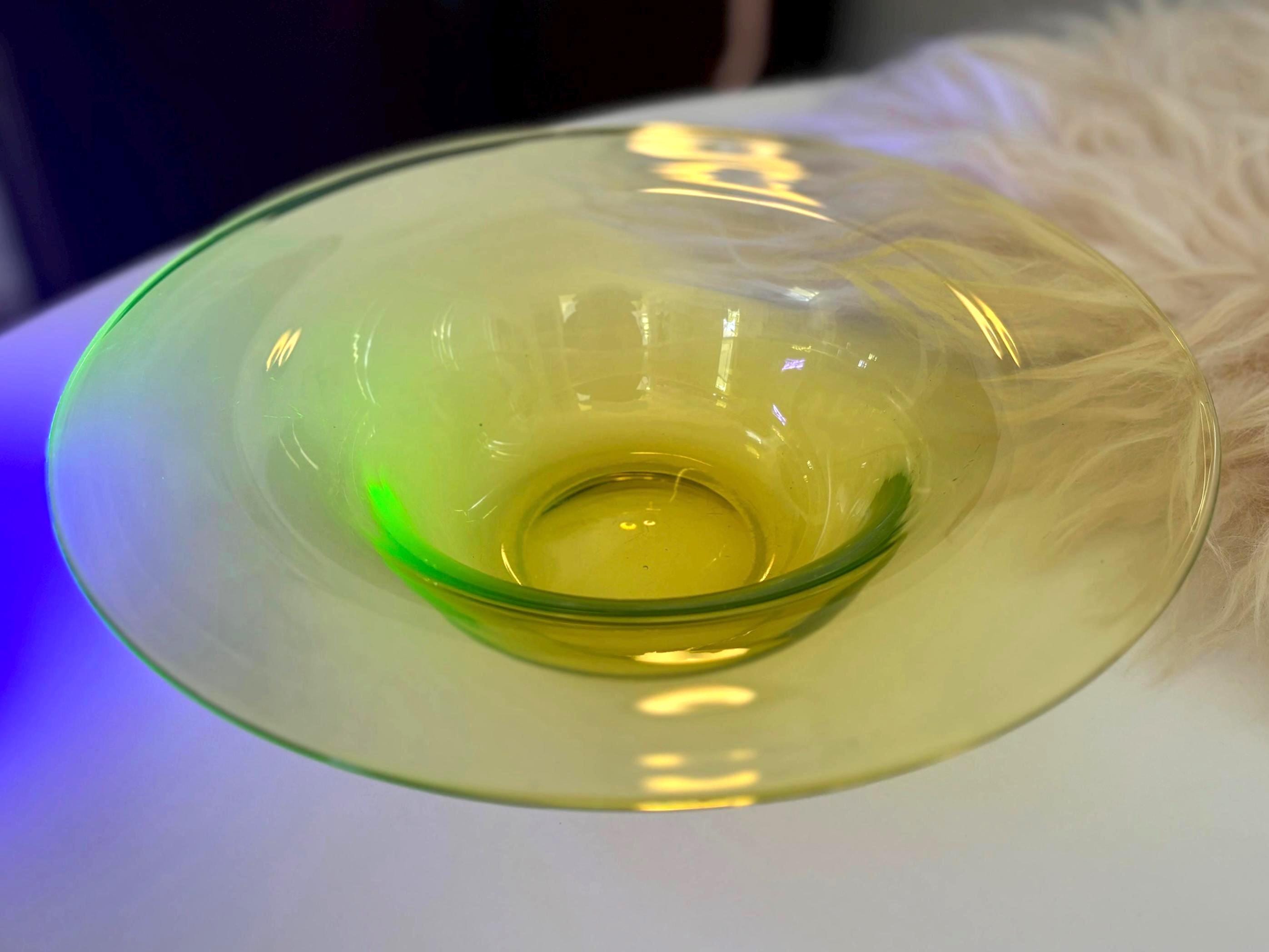 1930s UV Reactive Uranium Glass Bowl 11” MCM
