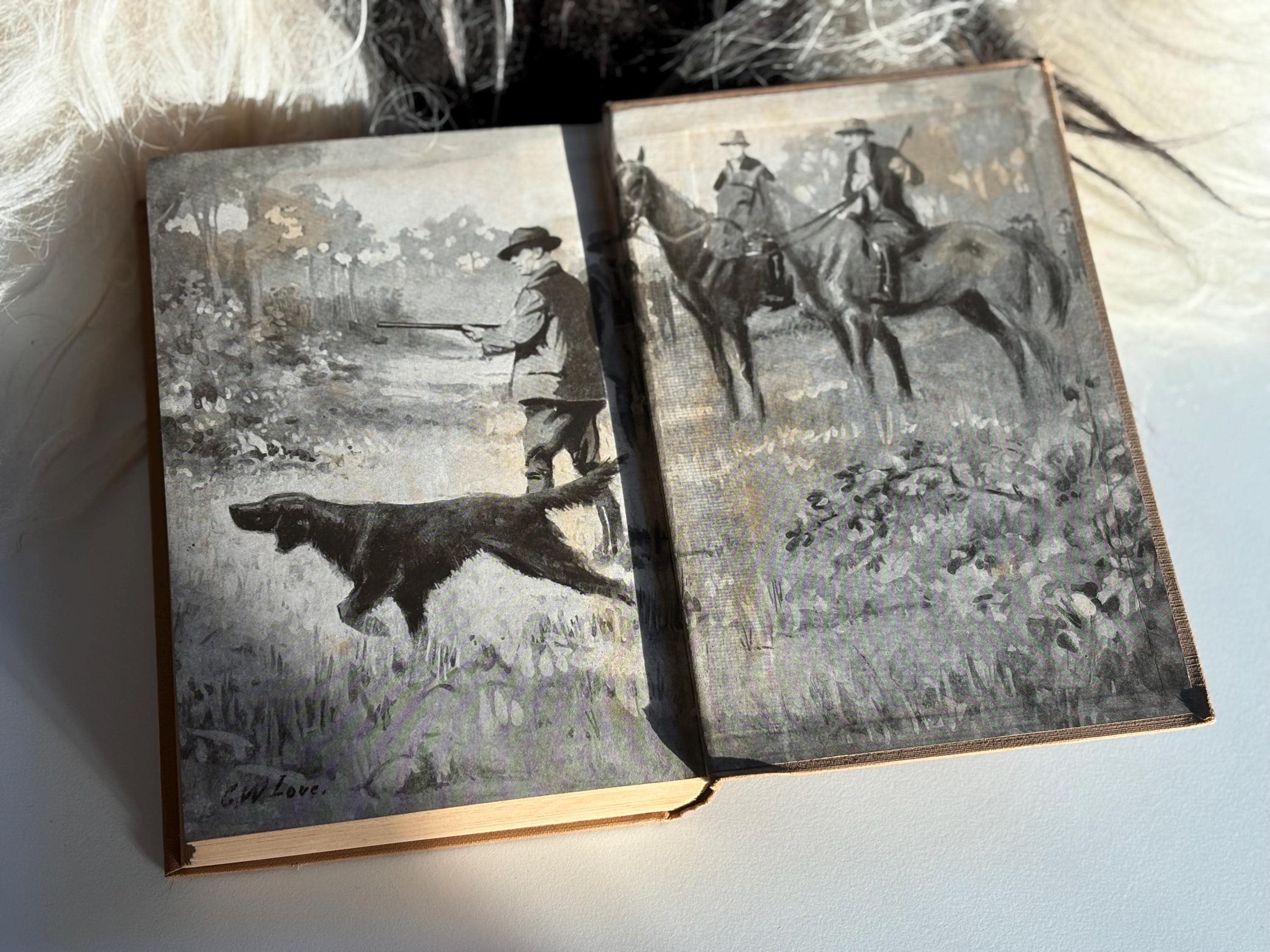 A stunning book in excellent condition. The cover has embossed printed artwork and the inside cover entails a full printed hunting scene by G.W. Love in the front and back. The first page includes a block printed label and a dedication. A gorgeous book for the library desk. Printed in 1940 by A.F. Hochwalt Company in Dayton OH and written by Horace Lytle.