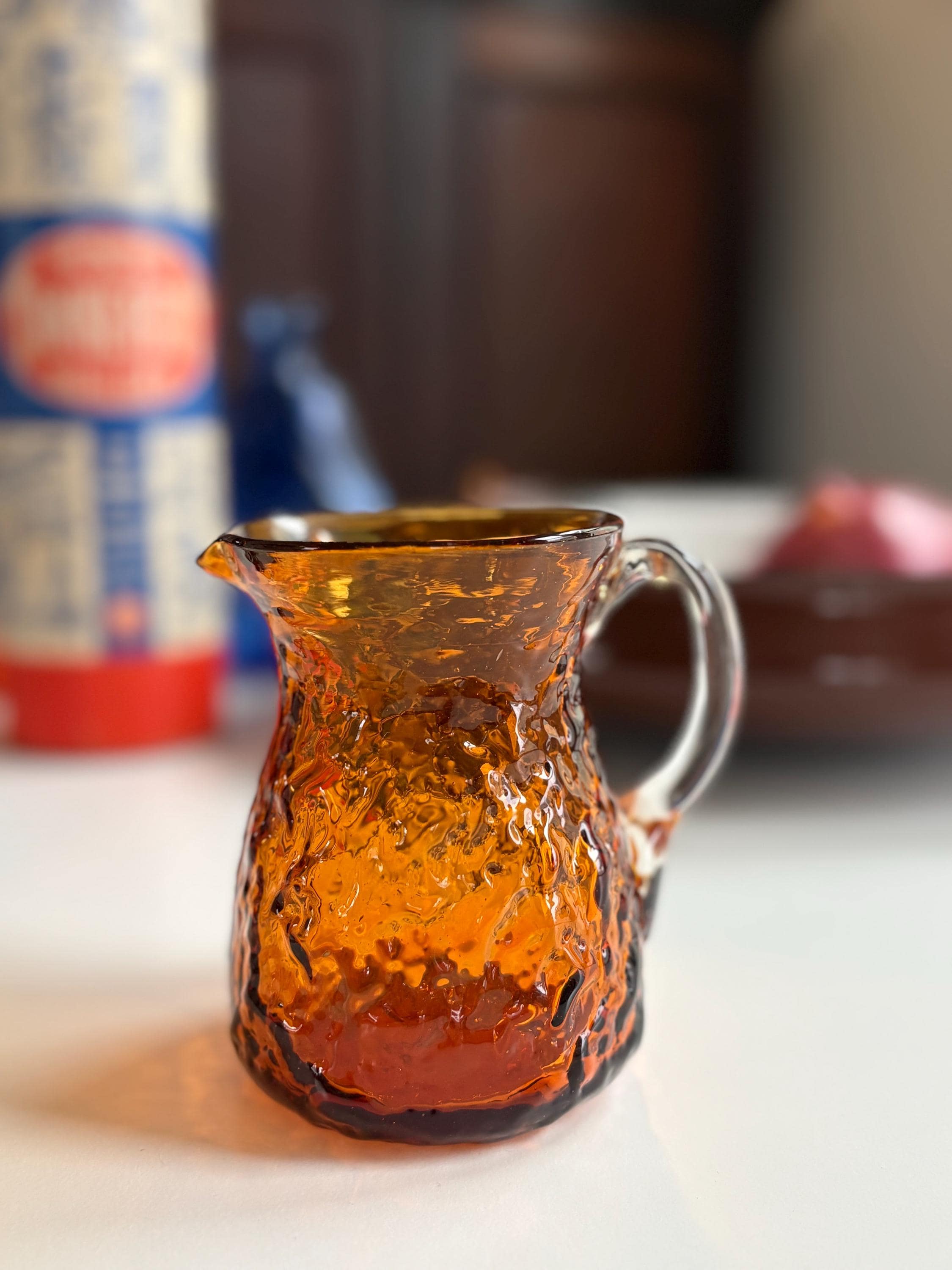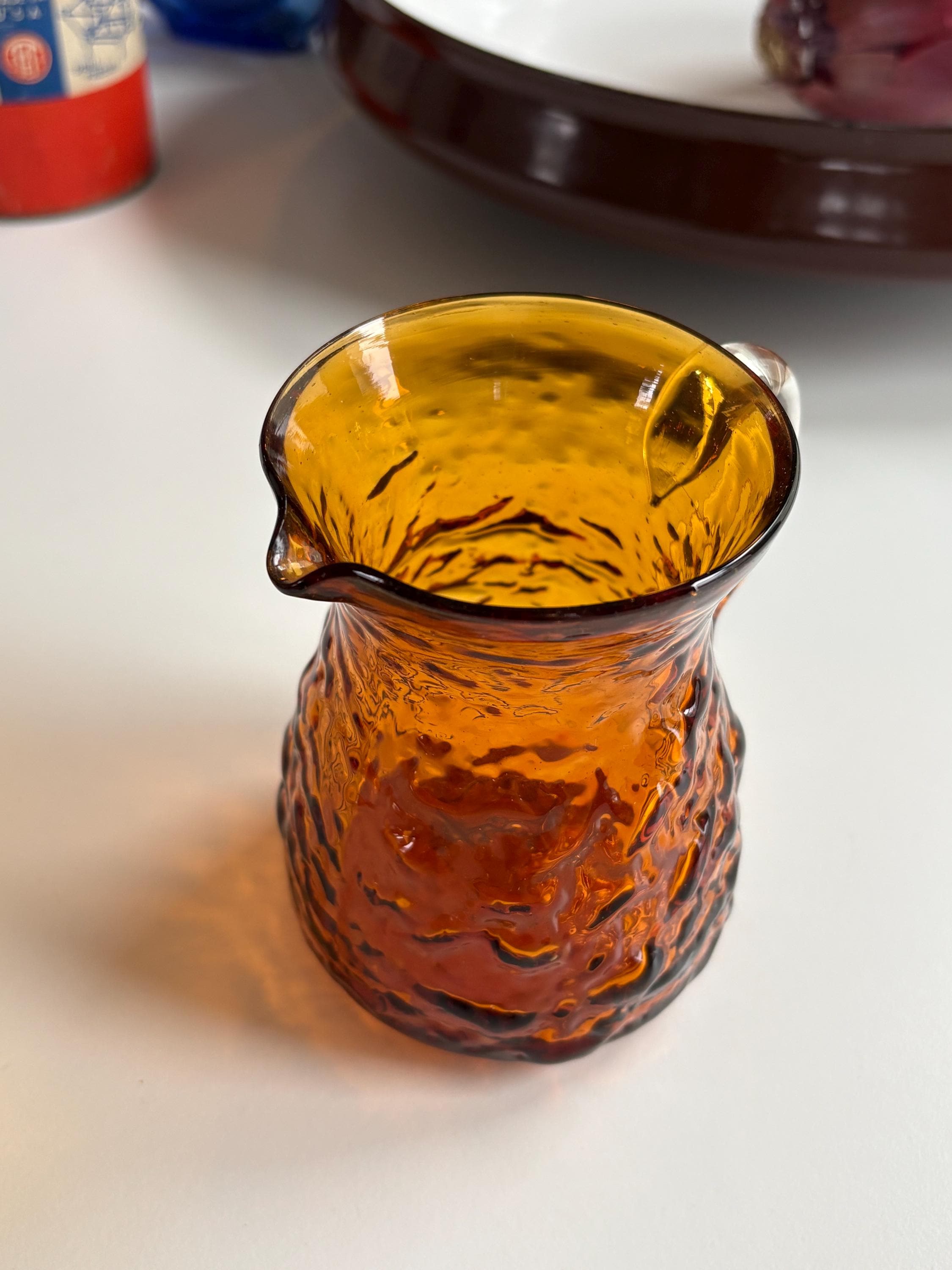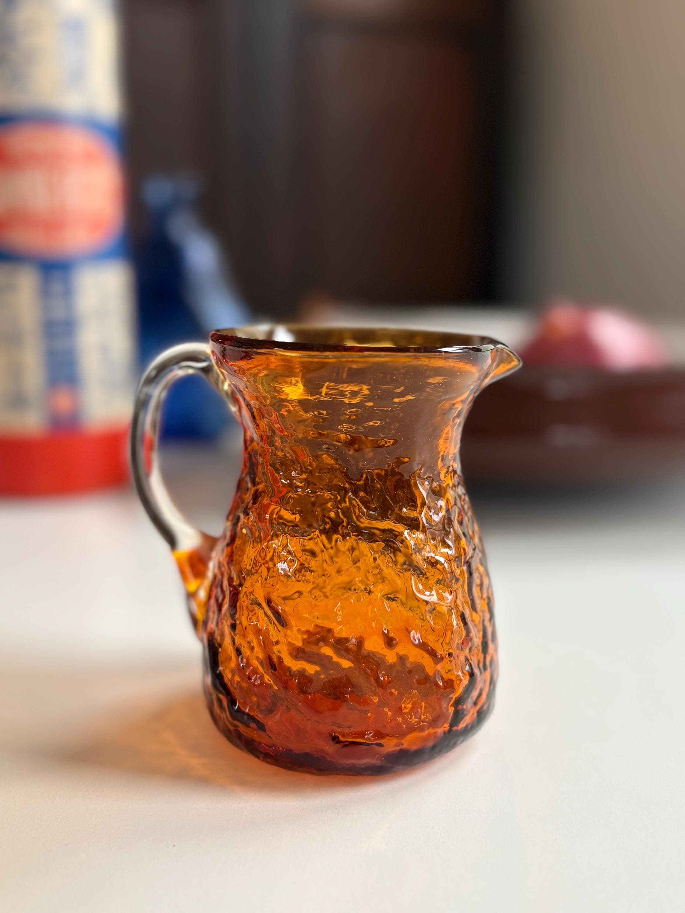 1960s MCM Orange Pilgrim Textured Glass Creamer