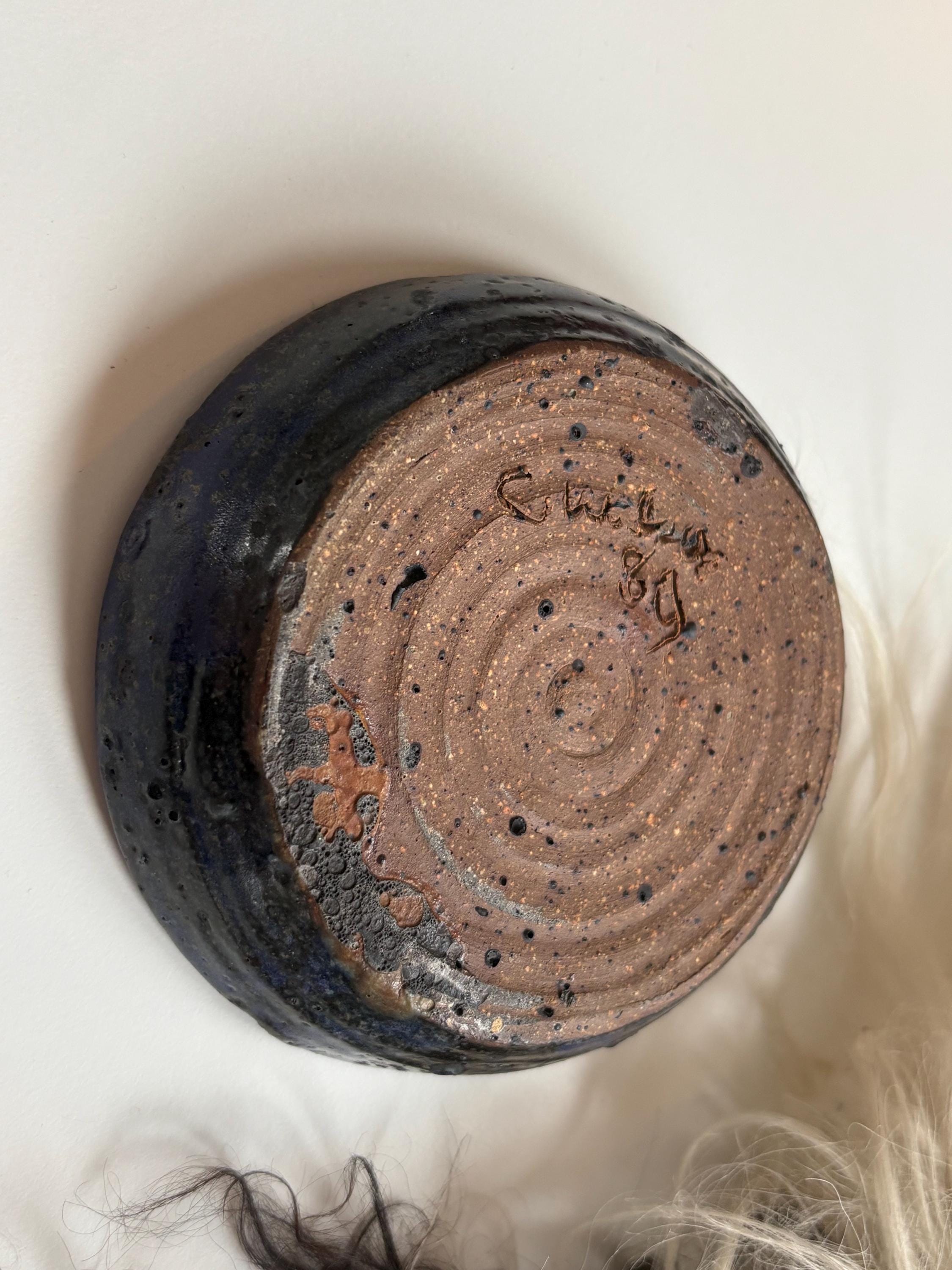 1989 Signed Cobalt Blue & Black Lava Glazed Studio Pottery Ashtray