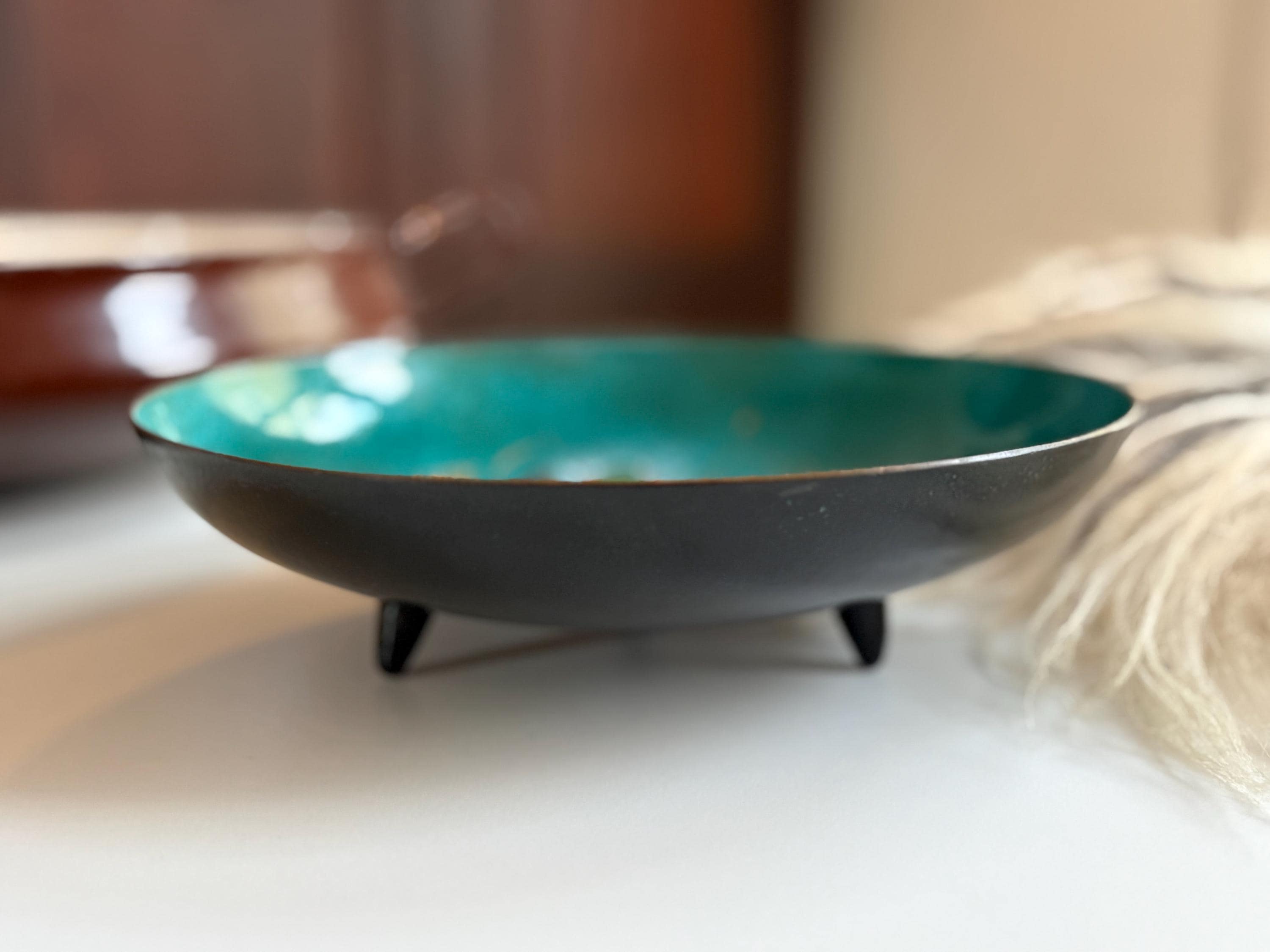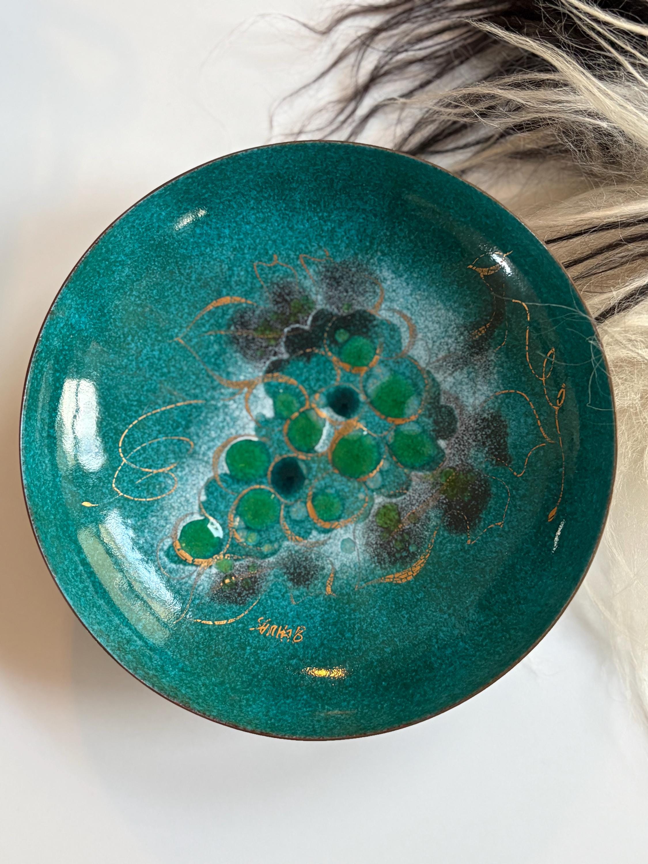 MCM German Enamal Turquoise Hand Painted 8” Dish by Sascha Brastoff